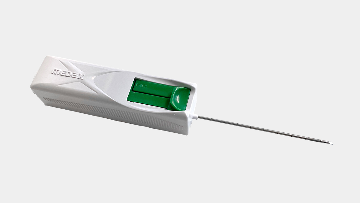 The MedOne biopsy device features a wingless charging design, paired with an offset needle position to facilitate access to soft tissue lesions. Through optimising spring compression, MedOne delivers good quality, reliable tissue capture even in dense and calcified tissue. Licensed for use in breast, prostate, kidney, lung and liver, the MedOne offers a solution to most soft tissue biopsy needs.